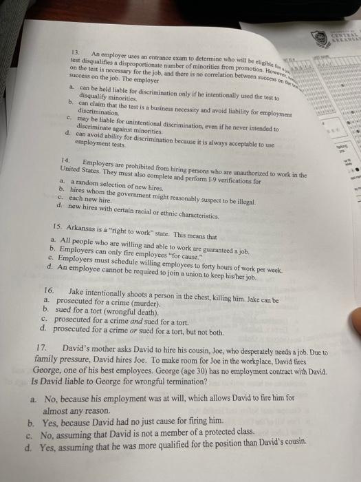 Solved 13 Test Disqualifies A Disproportionate Number Of Chegg Com